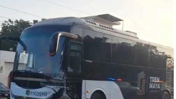 Un autobús sistema de transporte del Tren Maya chocó contra una camioneta particular en la carretera federal 307, en Tulum, Quintana Roo, y su conductor se dio a la fuga.