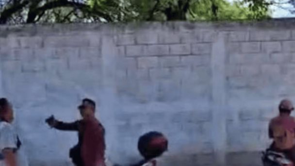 Y es que, circula un video en las redes sociales, se ve a un hombre vestido de playera color roja, quien porta un arma de fuego y discute afuera de la escuela secundaria Ricardo Flores Magón en la colonia Aviación en el municipio de Huajuapan de León.