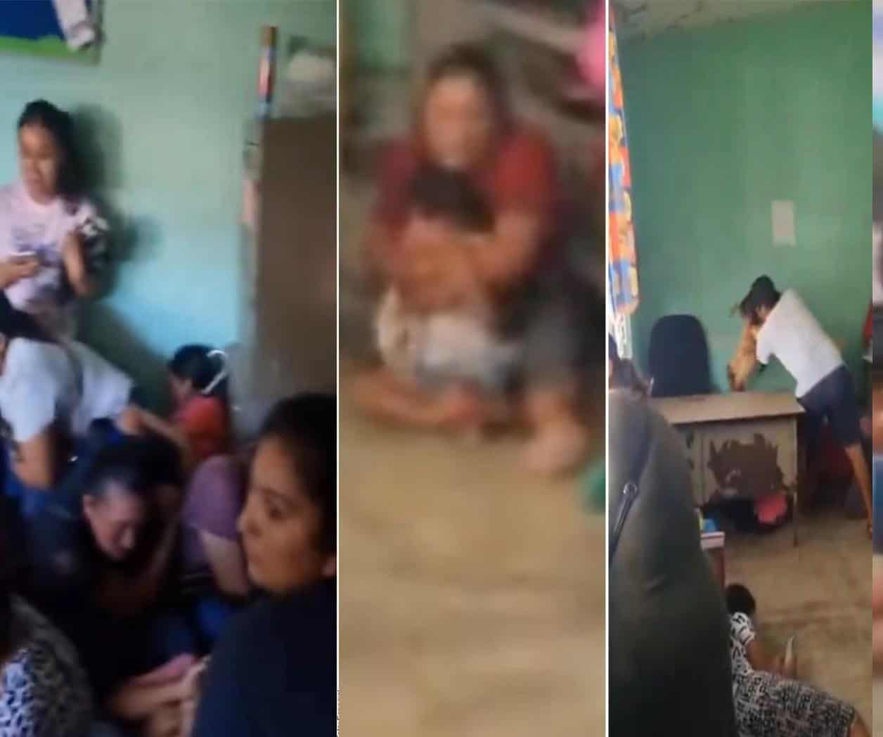 Los llantos de los pequeños se escuchan en un video, mientras las maestras y maestros, desesperados, urgen en sus celulares apoyo