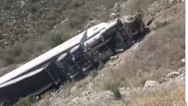 MONTERREY, NL.-Un tráiler sufrió una volcadura y cayó a una pendiente cuando circulaba por la Carretera Libre a Saltillo, en dirección a Monterrey, lo que generó un atorón vial por el cierre del carril de alta velocidad.