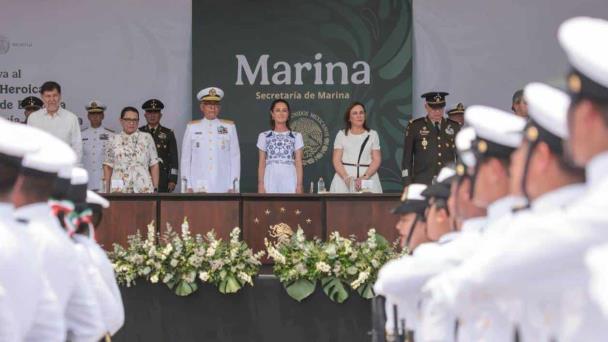Como parte de la Ceremonia Conmemorativa, la Jefa del Ejecutivo Federal realizó el pase de lista de héroes de la Heroica Escuela Naval Militar y el Colegio Militar, apreció el Toque de Silencio de la Banda de Guerra y una salva de fusilería ejecutada por las brigadas del Cuerpo de Cadetes; y posteriormente, tomó protesta al personal de cadetes de la Escuela de Enfermería, Médico y Heroica Escuela Naval Militar.
