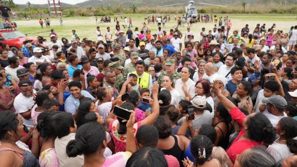 La Presidenta Claudia Sheinbaum recorrió las zonas afectadas por el huracán "Erick".