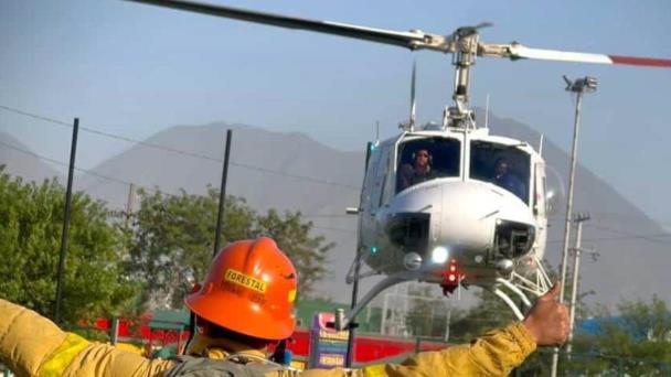 Combaten vía helicóptero incendio en Cerro del Topo Chico