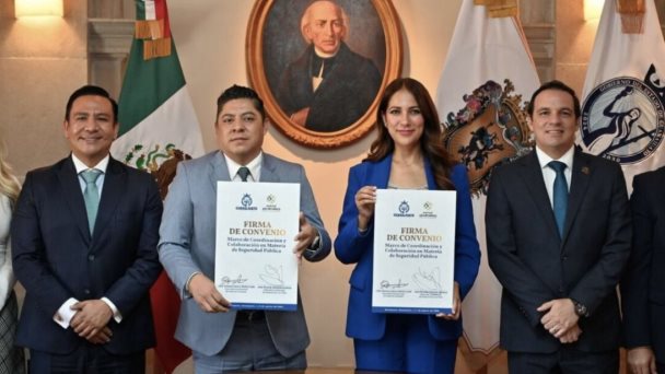 La gobernadora Libia Dennise García Muñoz Ledo y su homólogo potosino José Ricardo Gallardo Cardona, firmaron un convenio interestatal de coordinación y colaboración en materia de seguridad, para fortalecer la cooperación entre ambas entidades considerando que la delincuencia actúa sin medir límites territoriales.