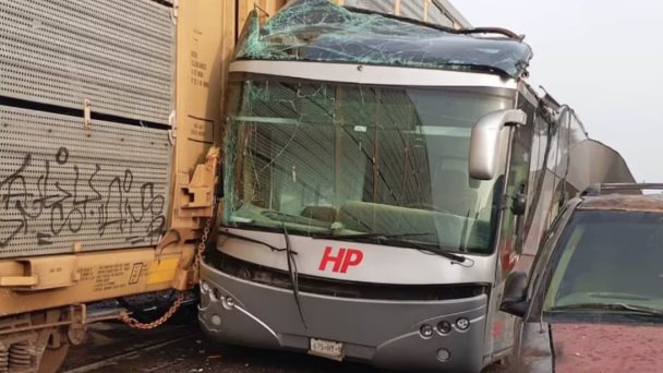 De acuerdo con los primeros reportes, el impacto ocurrió cuando la unidad de transporte público circulaba con pasajeros a bordo y fue alcanzado por el ferrocarril.
