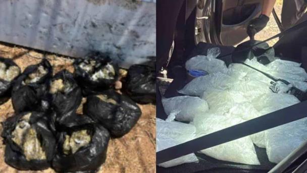 En acciones separadas, las fuerzas federales aseguraron ocho kilos de marihuana y 20 bolsas de plástico con una sustancia parecida a la metanfetamina, en los operativos de detuvo a una persona del sexo masculino y se le aseguró un vehículo en el que transportada una de las drogas.