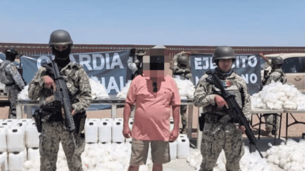 En un operativo en Sonora, se aseguraron 838 kilos de metanfetamina en San Luis Río Colorado, con una persona detenida como resultado.