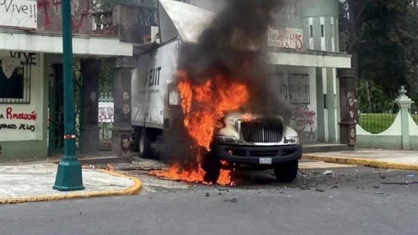 CIUDAD DE MÉXICO,- Padres de los 43 estudiantes desaparecidos de la escuela rural "Isidro Burgos", en Ayotzinapa, Guerrero, acompañados de centenas de normalistas del País, quemaron un camión frente al Campo militar 1-A y vandalizaron instalaciones.