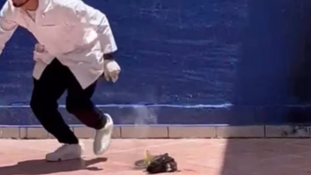 En las imágenes difundidas por la Asociación Civil Gaticos, se observa cómo hay un animal en el suelo del cual desprende humo, así como a un joven con bata, quien aparentemente fue el responsable de encender los fuegos artificiales. La segunda imagen es del gato elevado a metros del suelo por el efecto de la pirotecnia.
