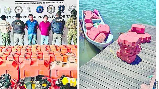 Los detenidos, identificados como Juan Luis “N” y Johnny de Jesús “N”, fueron encontrados en posesión de 30 equipos de respiración autónoma, una embarcación pequeña y un teléfono celular.