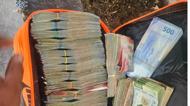 "Le hallaron seis cartuchos útiles de diferentes calibres, una bolsa con una sustancia sólida color blanco parecida a la cocaína y, en la cajuela debajo del asiento, al interior de una mochila color naranja había fajos de billetes que sumaron aproximadamente un millón de pesos", señaló la Secretaría de Seguridad Ciudadana.