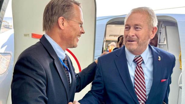 La Embajada de ese país posteó en sus redes sociales una fotografía en la que el diplomático es recibido en la escalinata del avión por Mark Johnson, encargado de Negocios y quien fungió como responsable de la representación estadounidense desde el 7 de enero pasado.