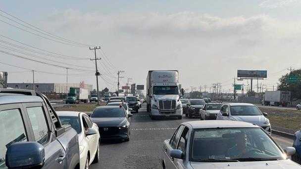 Logística en Aeropuerto del Norte genera embotellamiento vial en Carr. Mty. - Nvo. Laredo