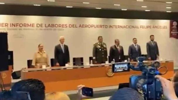 El himno fue interpretado al final del evento, leyendo los folletos y mirando también la letra en las pantallas. La ceremonia duró media hora, con discursos del director general del AIFA, el militar retirado Isidoro Pastor Román, y el Secretario de Infraestructura, Comunicaciones y Transportes, Jorge Nuño.