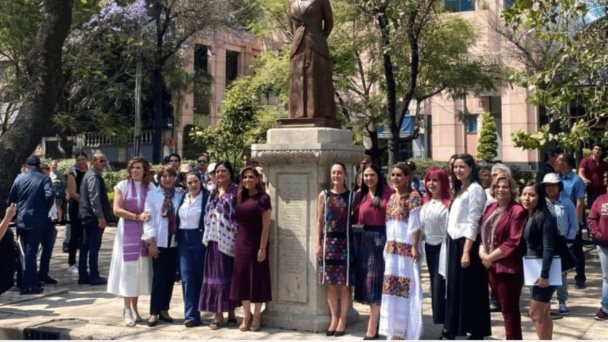 Durante un acto protocolario, la jefa de Gobierno, Claudia Sheinbaum, en compañía de secretarias y gobernadoras, develó la escultura de Dolores Jiménez y Muro, esto en el marco del Día Internacional de las Mujeres.