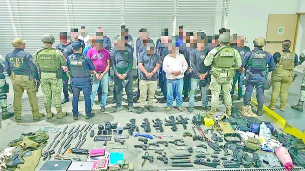 De acuerdo con reportes oficiales, en el lugar los uniformados aseguraron un arma corta calibre 9 milímetros, 19 réplicas de fusiles de asalto, cuchillos tipo militar, equipo táctico, radios de comunicación y un simulador de artefacto explosivo.