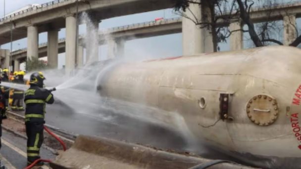 El Centro de Comando, Control, Cómputo, Comunicaciones y Contacto Ciudadano (C5) compartió el momento exacto en el que la pipa volcó mientras circulaba en el puente de la Concordia, en los límites de Iztapalapa con Los Reyes La Paz.