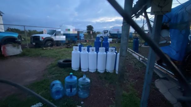De acuerdo con lo informado, durante los trabajos realizados por la Policía Federal Ministerial y el Centro Federal Pericial Forense se aseguraron dos tanques estacionarios, un medidor, 103 cilindros de diversas capacidades, tres pipas, cuatro camionetas y aproximadamente tres mil 584 litros de gas.