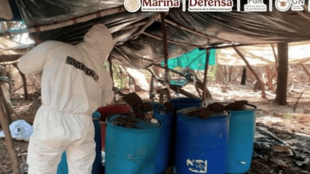 Fuerzas federales encabezadas por la Marina, desmantelaron seis laboratorios de drogas sintéticas e incautaron más de cuatro toneladas de metanfetamina en Navolato, Sinaloa