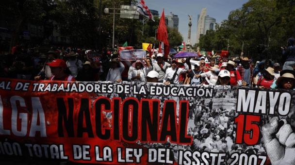 Los maestros adheridos a la CNTE realizaron una manifestación por la avenida Reforma en la Ciudad de México.