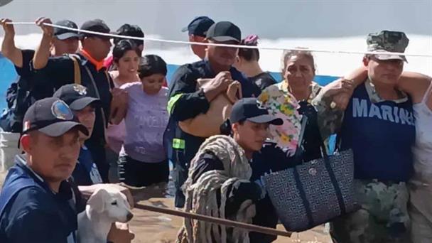 En Huehuetla, el desbordamiento del río provocó graves daños en la cabecera municipal, donde más de 700 personas permanecen atrapadas por bloqueos en las carreteras. Los habitantes que han logrado comunicarse piden ser evacuados ante el riesgo de que el nivel del agua continúe en aumento.