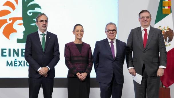 El secretario de Economía, Marcelo Ebrard Casaubon, precisó que la inversión que hace Heineken forma parte del Portafolio de Inversión del Plan México, que es de más de 200 mil mdd, además de que se instalará en Yucatán por facilidad hídrica, esto como parte de la estrategia de relocalización, en la cual las empresas se ubicarán en los lugares donde se encuentran los recursos.