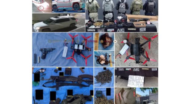 El cateo de una casa del municipio de Jiutepec arrojó el aseguramiento de un dron modificado para carga, presunto material explosivo, un cordón detonante, armas de fuego y municiones de diversos calibres de alto poder de uso exclusivo de las Fuerzas Armadas, así como una cartulina con un mensaje escrito de amenaza a un grupo delictivo con presencia en la zona.