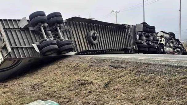 Volcadura de tráiler cierra circulación hacia Monterrey