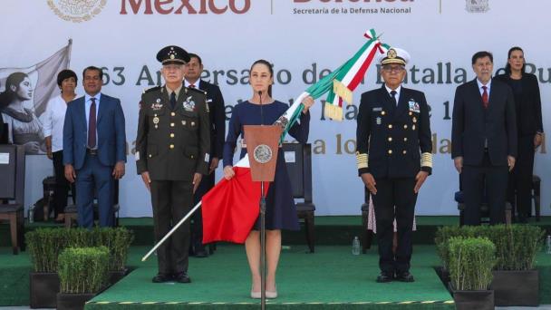 La Jefa del Ejecutivo Federal, tras tomar protesta 37 mil 442 soldados del Servicio Militar Nacional, recordó que la victoria del 5 de mayo de 1862 ante el ejército francés fue a causa del patriotismo del pueblo y de los indígenas poblanos, de la valentía, entrega y capacidad de sacrificio de los soldados mexicanos al mando del general Ignacio Zaragoza, quien fue nombrado como "Benemérito de la Patria en grado Heroico" por el entonces Presidente Benito Juárez, y que por sus méritos se renombró la capital poblana como Puebla de Zaragoza y su nombre se inscribió en letras de oro en el Congreso de la Unión.