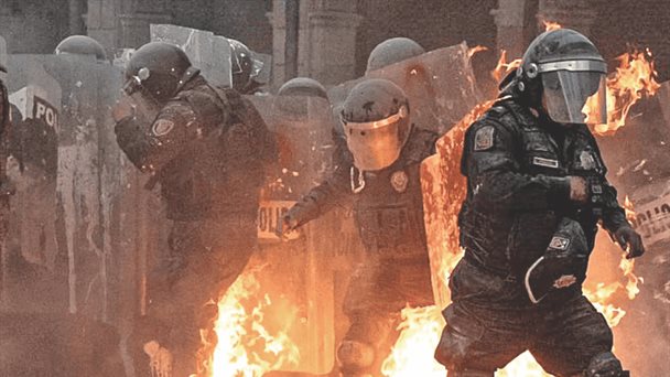 Durante los enfrentamientos, los elementos de seguridad intentaron repeler a los manifestantes con extintores y gas de chile; por su parte, los del Bloque Negro lanzaron petardos, palos y piedras.
