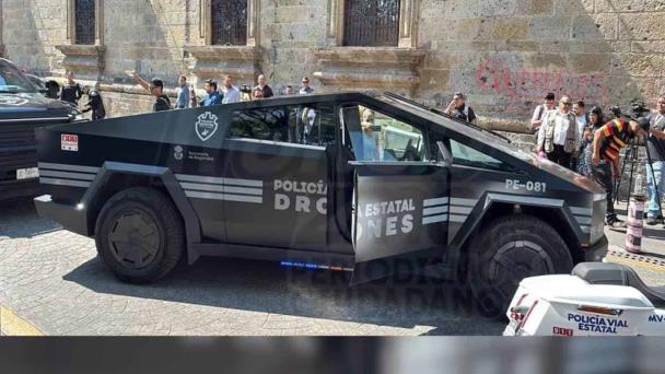 La tarde de este martes, el gobernador Pablo Lemus presentó en el centro de Guadalajara una de las nuevas unidades Cybertruck, como parte de las 700 patrullas con las que busca fortalecer la seguridad en Jalisco. Esta camioneta eléctrica de alta gama, desarrollada por Tesla, será utilizada para labores de inteligencia móvil.