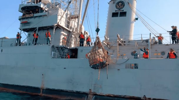 Las instituciones aseguraron y trasladaron ambos contenedores a una zona segura dentro del canal de navegación, donde personal de Semar los rescató y subió a bordo del buque "Escobedo".