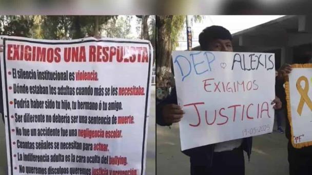 Asimismo, desplegaron una lona en la que se leía: "El silencio institucional es violencia. ¿Dónde estaban los adultos cuando más se les necesitaba? Podría haber sido tu hijo, tu hermano o tu amigo. Ser diferente no debería ser una sentencia de muerte. No fue un accidente, fue una negligencia escolar."