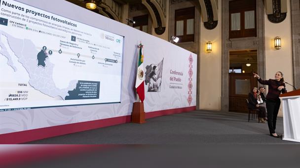 Además, anunció que la próxima semana iniciará la construcción de la tercera fase de la Central Fotovoltaica Puerto Peñasco y en febrero comenzará la cuarta fase, para concluir el complejo fotovoltaico más grande de Latinoamérica, alcanzando una capacidad de mil MW, con una inversión total de 13 mil 277 mdp. Detalló que las Centrales Fotovoltaicas Carbón II y Río Escondido, en Coahuila, aportarán 556 MW de capacidad con una inversión estimada de 15 mil 449.9 mdp.