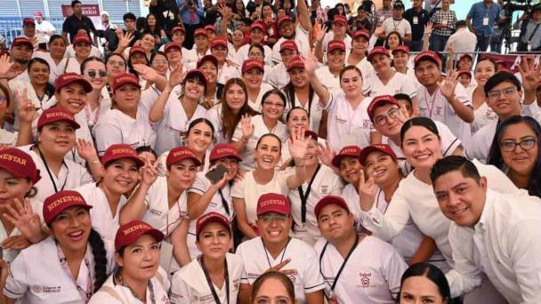 "Yo digo que es el programa más ambicioso de todo el mundo de atención y prevención a la salud y lo llevan a cabo las y los mejores de México, que son las y los enfermeros de nuestro país, la verdad, los médicos también, médicas, pero la verdad es que el trabajo que hacen las y los trabajadores de la salud, enfermeras, enfermeros es algo extraordinario y nosotros queremos que sean el centro de este programa y se van a volver famosos mundialmente porque vamos a presumir, dentro de muy pocos años, que somos el programa de prevención a la salud más importante de todo el mundo y que se va a notar en los índices", afirmó ante 500 médicas, médicos, enfermeras, enfermeros, servidores de la nación y derechohabientes que la acompañaron.