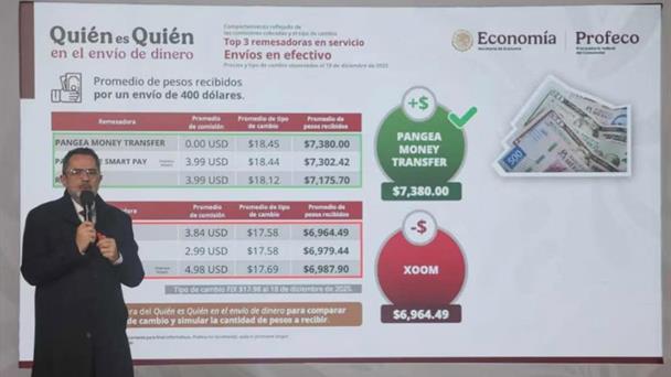 Sobre las remesas, FinaBien mantiene el mejor rendimiento, Profeco recordó que en su sitio de internet cuenta con un simulador de remesas, donde las personas pueden comparar comisiones y tipos de cambio. En el ejercicio presentado, FinaBien se mantuvo como la remesadora que más pesos entrega, al otorgar 7 mil 304.98 pesos por cada 400 dólares enviados, tanto en la modalidad de depósito a cuenta como en transferencia, por lo que recibió "palomita".