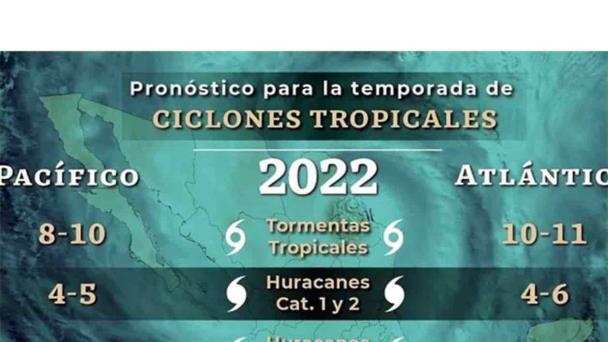 Para esta temporada de ciclones, el SMN prevé hasta 21 en el Atlántico y 19 en el Pacífico y que al menos 5 impacten en territorio nacional