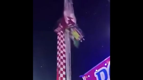 La noche de este domingo el juego mecánico de nombre Booster se impactó con su propia estructura y quedó suspendido a más de 20 metros (m) de altura con dos personas atrapadas en una canastilla, en la 44 Feria de San Miguel Arcángel y la Alfarería 2025.