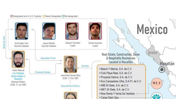 El Departamento del Tesoro de Estados Unidos sancionó a los hijos del capo Joaquín "El Chapo" Guzmán, apodados "Los Chapitos", quienes forman parte de una facción del Cártel de Sinaloa.