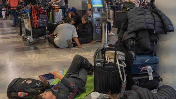 Viajeros tuvieron que dormir en el aeropuerto ante la cancelación de vuelos por mal clima.