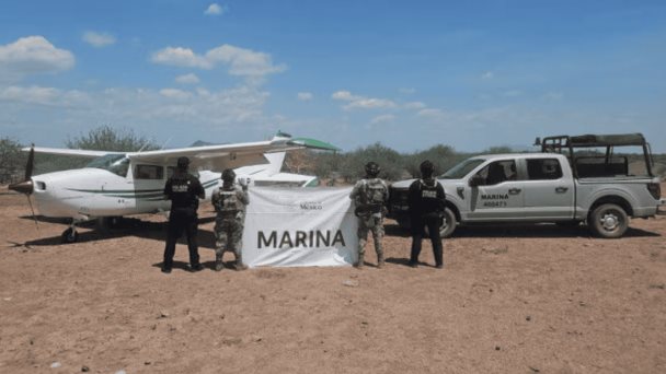Elementos de la Secretaría de Marina (Semar) aseguraron una avioneta tipo Cessna color blanco con franjas verdes, que aterrizó en una pista clandestina en el municipio de Cajeme, Sonora.