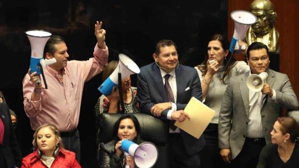 - Tras completarse el quorum requerido para sesionar, el presidente de la Mesa Directiva del Senado, Alejandro Armenta informó que por las condiciones que se viven al interior del pleno, trasladaban el trabajo a una sede alterna.
