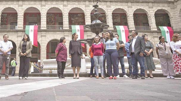 Por la mañana, la primera mandataria izó a media hasta la bandera nacional en el Zócalo, en memoria de las víctimas de los sismos ocurridos el 19 de septiembre de 1985 y 2017.