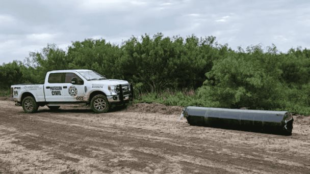 Partes del cohete de SpaceX que cayeron en el ejido La Burrita, Tamaulipas.