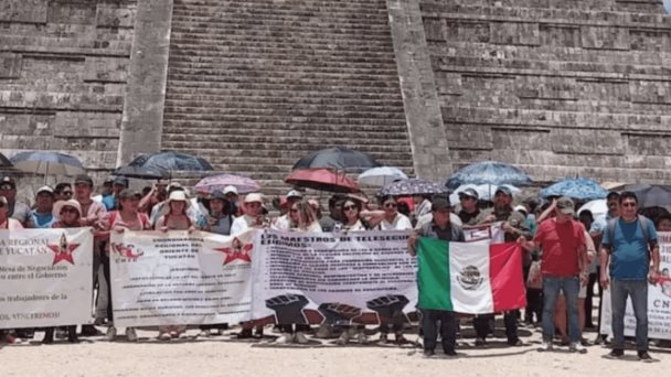 Este miércoles, maestros de la Coordinadora Nacional de Trabajadores de la Educación (CNTE) tomaron el parador turístico de la zona arqueológica de Chichén Itzá, así como los sitios de Ek Balam y Uxmal, donde permitieron el acceso gratuito de los visitantes.