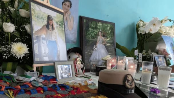 Las dos gorras de la Heroica Escuela Naval Militar del puerto de Veracruz que portaba orgullosa Yamilet Sánchez yacen ahí, inmóviles, rodeadas de fotografías con su rostro sonriente y feliz, evocando una vida que se fue a corta edad.