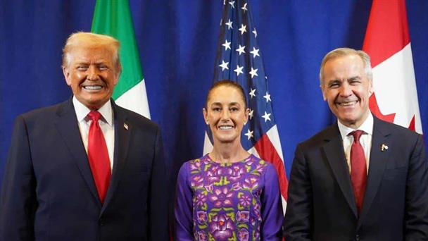 La presidenta Claudia Sheinbaum Pardo, flanqueada por Trump y Carney, aseguró que el vínculo comercial se mantendrá bajo principios y cooperación.