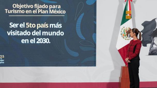 La presidenta Claudia Sheinbaum Pardo resaltó que, como parte del Plan México, se tiene la meta de que el país se convierta en el quinto más visitado en el mundo, lo que representa un incremento del 40 por ciento para el 2030.