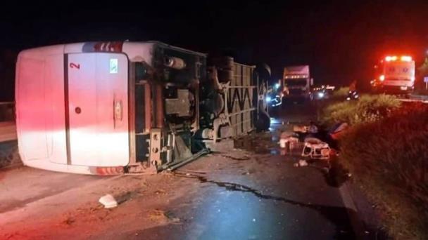 Tragedia en Hualahuises: autobús de turismo vuelca con víctimas mortales