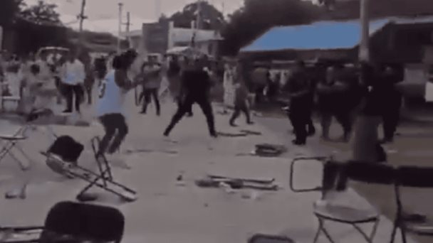 Lo que pareció sería una noche de celebración terminó en violencia en este municipio del oriente del Estado, donde el inicio de la fiesta patronal culminó en una batalla campal entre los asistentes.